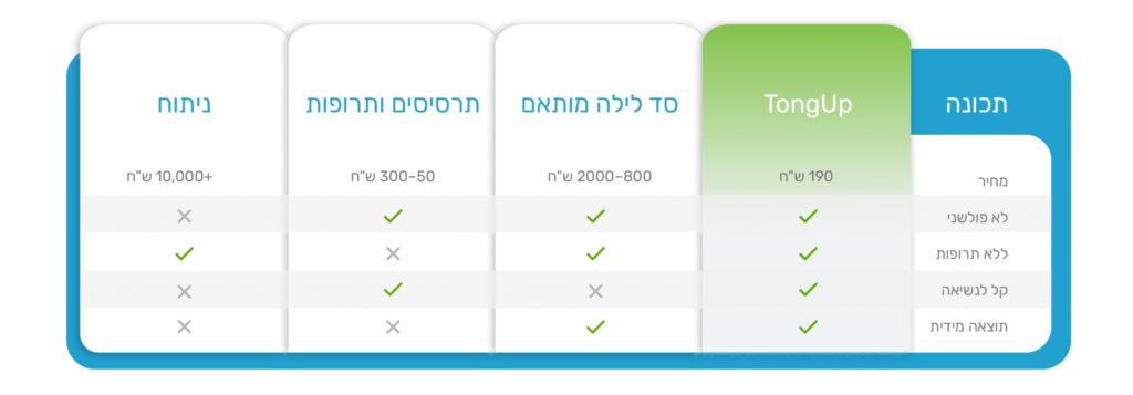 בלי תרופות, בלי מכשירים גדולים ובלי מאמץ – סד הלשון החדשני שלנו מציע פתרון טבעי להפחתת נחירות וחריקת שיניים, ומאפשר נשימה רציפה ושינה רגועה. בזכות מנגנון פשוט ונוח, הלשון נשארת במקומה לאורך הלילה, מעבר האוויר נשמר פתוח, ואתם מתעוררים רעננים יותר. מעל 70% הצלחה בקרב משתמשים מבוגרים – והכי חשוב, גם אתם וגם מי שישן לידכם סוף סוף יכולים ליהנות משקט אמיתי.